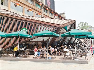 西安星巴克鐘樓店顧客絡繹不絕