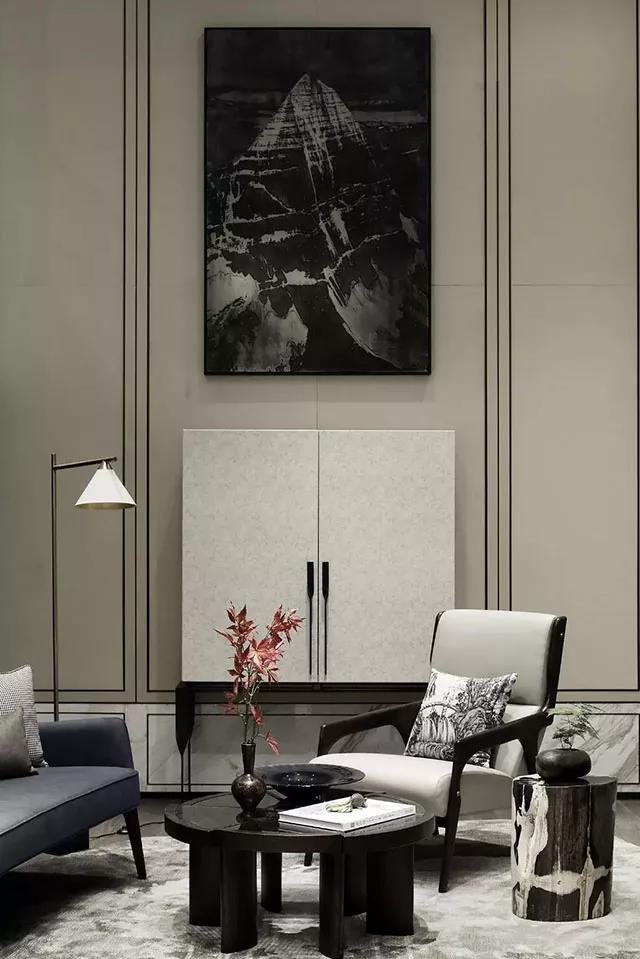壁間水墨畫(huà), 為爾拂塵埃。 草樹(shù)精神出, 溪山氣勢(shì)回。 路從沙觜斷, 人自渡頭來(lái)。 莫怪知音少, 牙弦匣不開(kāi)。 有一種獨(dú)特的東方美學(xué)范,叫“新中式”。它精致、華麗、有章法,是對(duì)品質(zhì)生活的理解和尊重。總體布局對(duì)稱(chēng)均衡,端正穩(wěn)健,在裝飾細(xì)節(jié) 上崇尚自然情趣,花鳥(niǎo)山水,富于變化,體現(xiàn)出中式美學(xué)精神。舒緩的意境始終是中式特有的情懷,因此水墨寫(xiě)意常常是成就這種詩(shī)意的最好 手段。 以東方的"留白"美學(xué)觀(guān)念控制的風(fēng)骨,顯出大家風(fēng)范。其墻壁上的裝飾無(wú)論數(shù)量還是內(nèi)容都不在多,而在于它所營(yíng)造出恰好的意境。入口處一面墻的寫(xiě)意水墨淡淡的從遠(yuǎn)處慢慢滲入,于是,會(huì)客廳沙發(fā)背景、走道盡頭端景、主臥床頭背景以及案幾上無(wú)意擺放的,都是或多或少、或重或輕的寫(xiě)意水墨,行云流水,一氣呵成。 黑色的水晶燈,配以白色墻面, 是想表達(dá)既現(xiàn)代元素和新中式也是百搭, 運(yùn)用采光和布局的特點(diǎn), 更多考慮了空間的開(kāi)放度, 鑄就流暢的敞亮通透感。 法,使整體不會(huì)過(guò)于沉悶和黑黑的一片,又達(dá)到極簡(jiǎn)中式的韻味。 當(dāng)“高級(jí)黑”和“新中式”相遇, 造就了一幅灰色的水墨寫(xiě)意。 這樣躺在舒服的沙發(fā)上, 光是欣賞著仿佛有生命般的水墨背景, 任千年的故事順指間流淌, 是種享受。 法,使整體不會(huì)過(guò)于沉悶和黑黑的一片,又達(dá)到極簡(jiǎn)中式的韻味。當(dāng)“高級(jí)黑”和“新中式”相遇,造就了一幅灰色的水墨寫(xiě)意。這樣躺在舒服的沙發(fā)上,光是欣 賞著仿佛有生命般的水墨背景,任千年的故事順指間流淌,是種享受。 傳統(tǒng)中式風(fēng)格中,銅制拉手及工藝飾品是永遠(yuǎn)繞不開(kāi)的話(huà)題,純粹的裝飾品,仿若水墨畫(huà)中的留白,平淡之中暗浮出恰到好處的美與雅。儲(chǔ)物柜一角的和諧,有一 種傳統(tǒng)文化的回歸感,讓簡(jiǎn)單的家居有了更耐人尋味的延伸感。 “壁間水墨畫(huà),為爾拂塵埃。” 在這極具東方韻味的水墨意境中, 詩(shī)意棲居